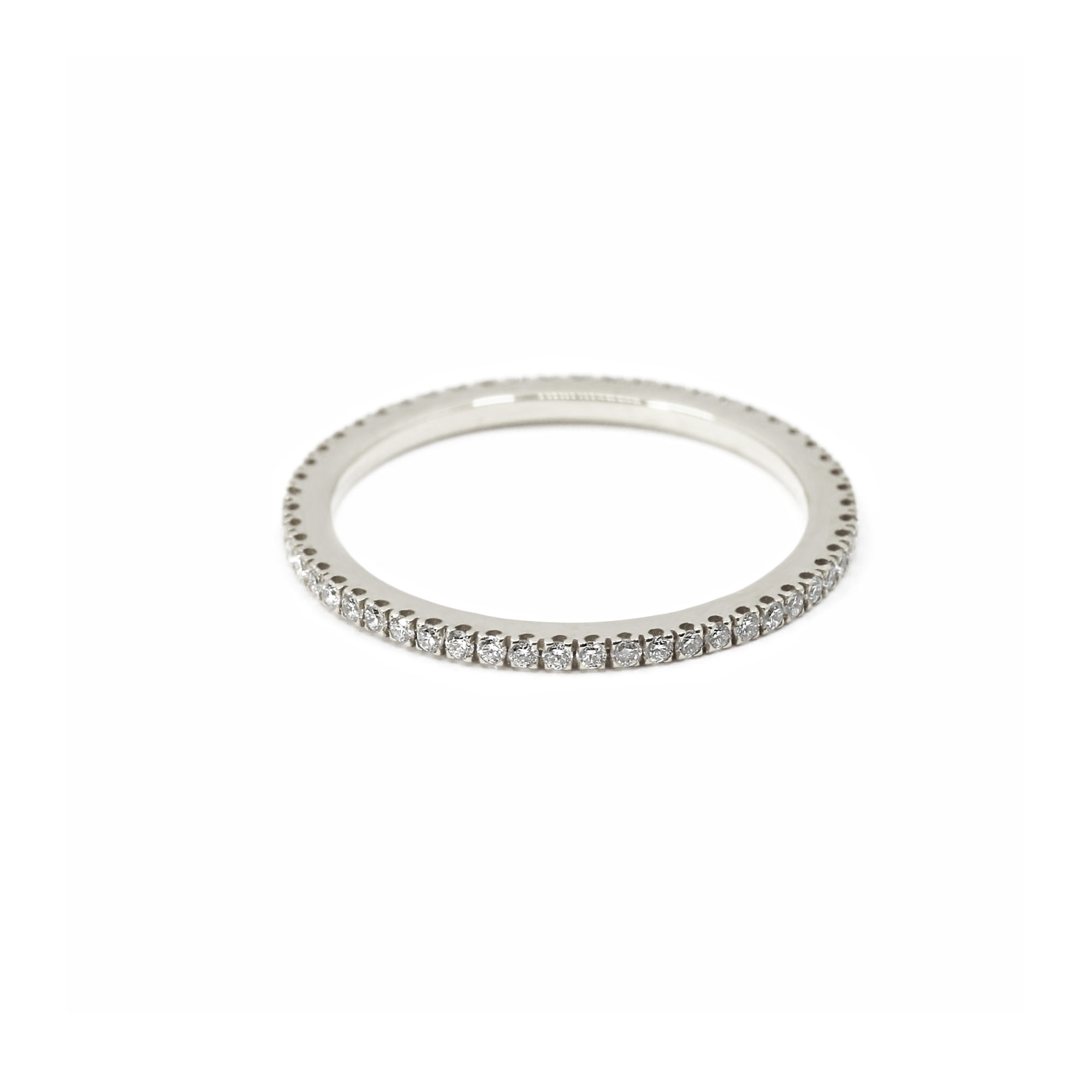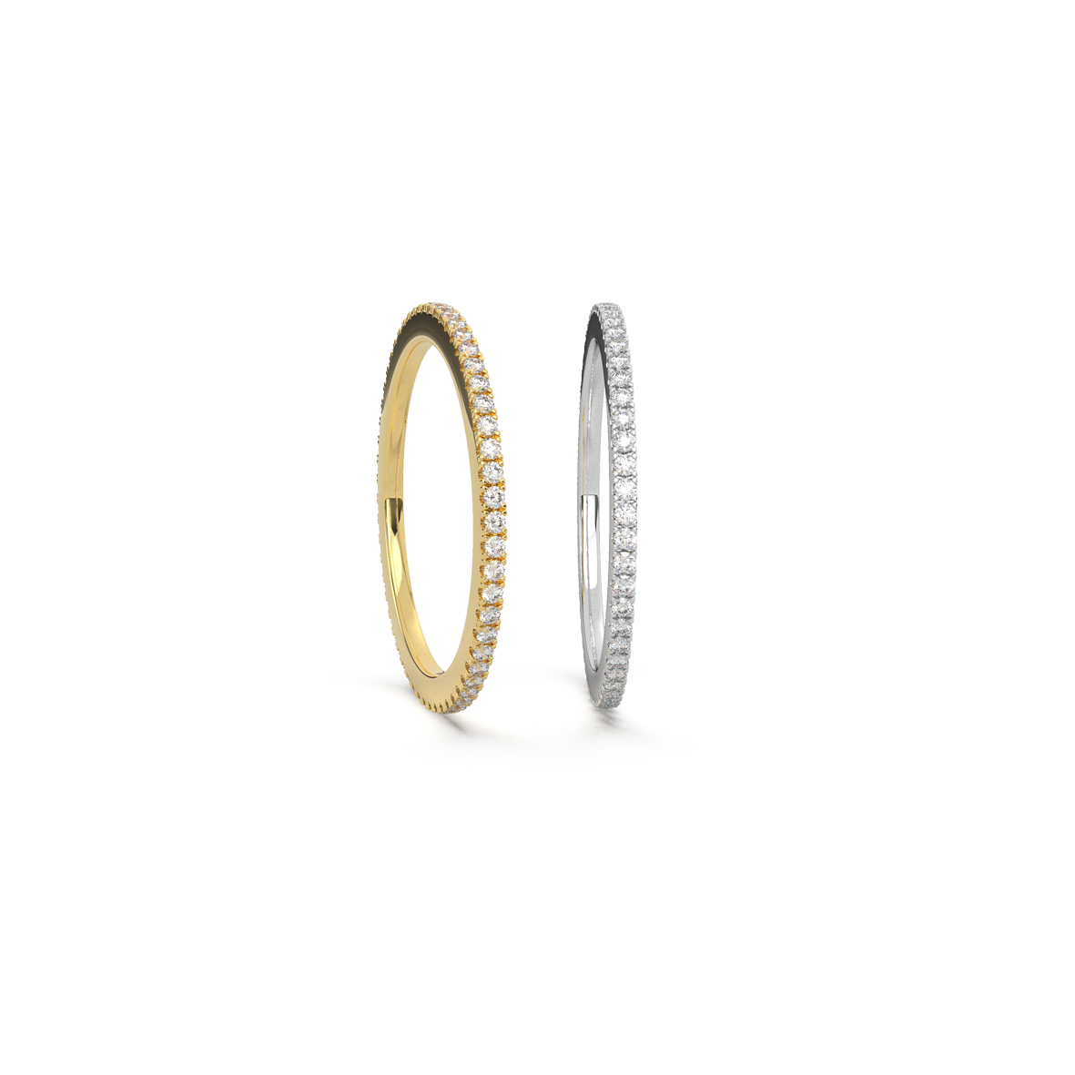 Célébrez votre amour avec les alliances des Rêveries d’Eve. Notre modèle Eternity est un anneau serti de 54 diamants. Son anneau ultra plat fait de ce modèle un bijou délicat, un rayon de lumière à votre doigt. Splendide bague éternelle.