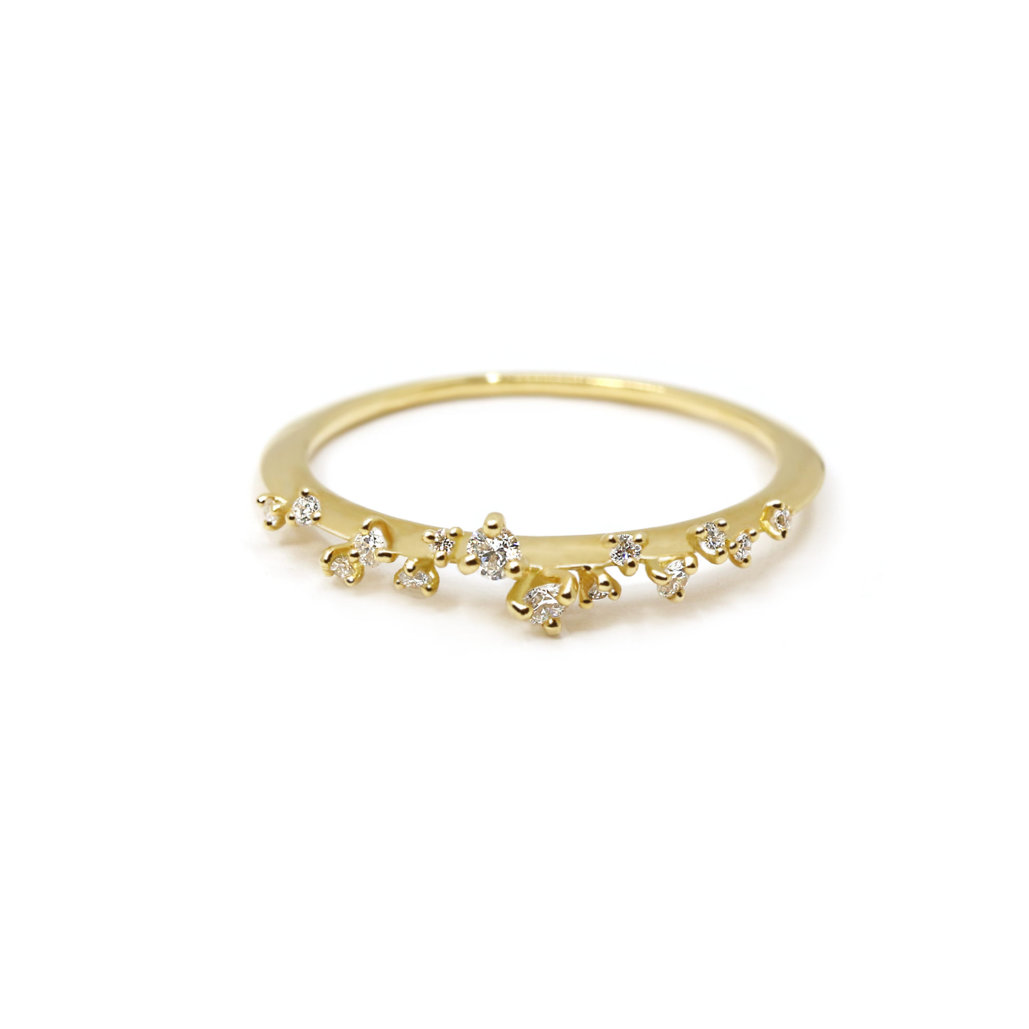 Incroyable bague Jardin des Délices! Composée d’un disque d’or ultra plat et surmontée de 12 diamants sortant de la matière comme des végétaux en mouvements, cette bague possède une poésie incomparable dans sa délicatesse. Une pièce merveilleuse et unique.