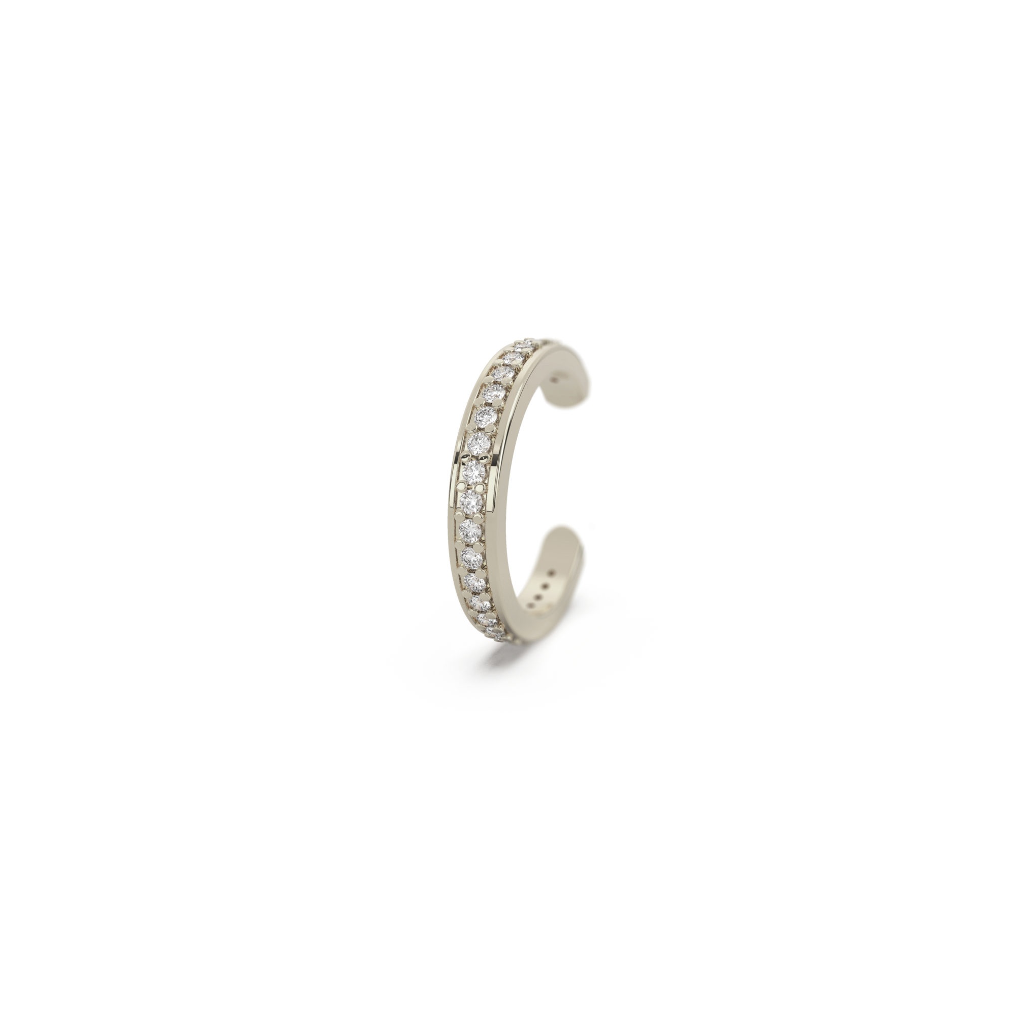 Bague d’oreille hyper tendance en argent massif rhodié, sertie à la main de zirconium blancs. Modèle intemporel grâce à son serti avec double rail, il complète à merveille les oreilles parées de bijoux!
