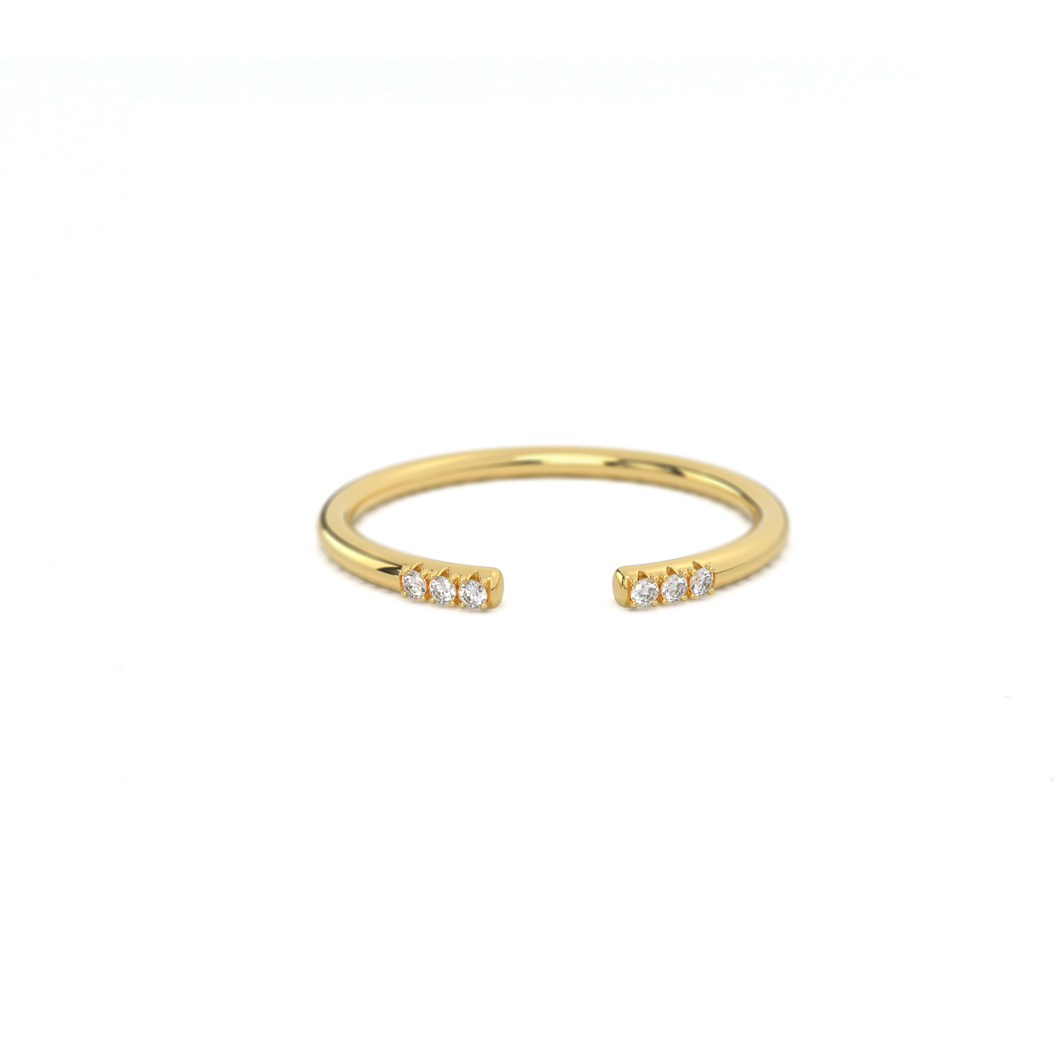 Modèle graphique et tendance, cette bague en argent massif plaqué or 18ct est un must have qui se marie avec tout. Cette bague épurée peut se porter avec d’autres modèles, empilée ou au petit doigt pour une touche brillante. C’est un sans faute! Ce modèle peut se décliner en or et diamants pour une bague de fiançailles.
