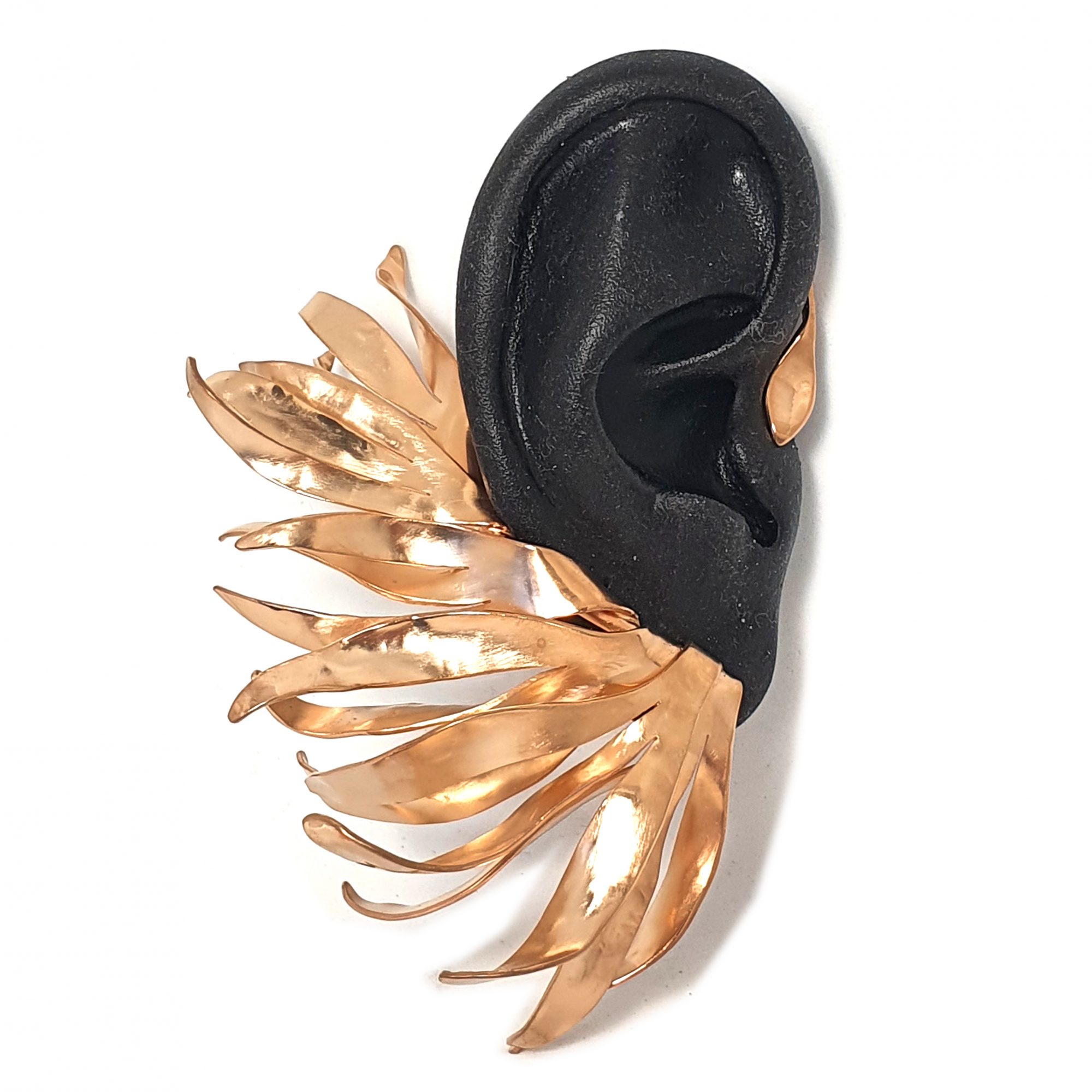 Extraordinaire mono boucle d’oreille, pièce unique qui se porte autour de l’oreille. Pièce phare de la ligne Les Merveilleuses, elle est réalisée en argent massif plaqué or rose 18cts.