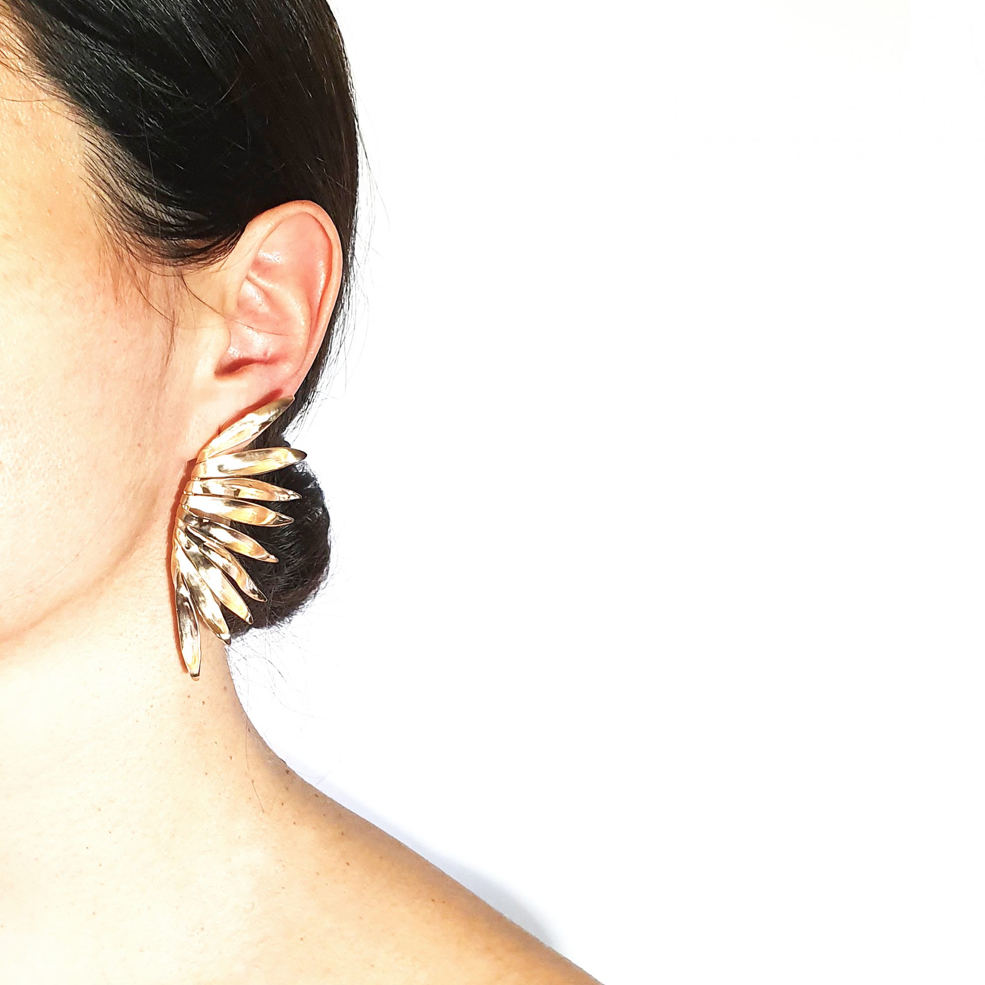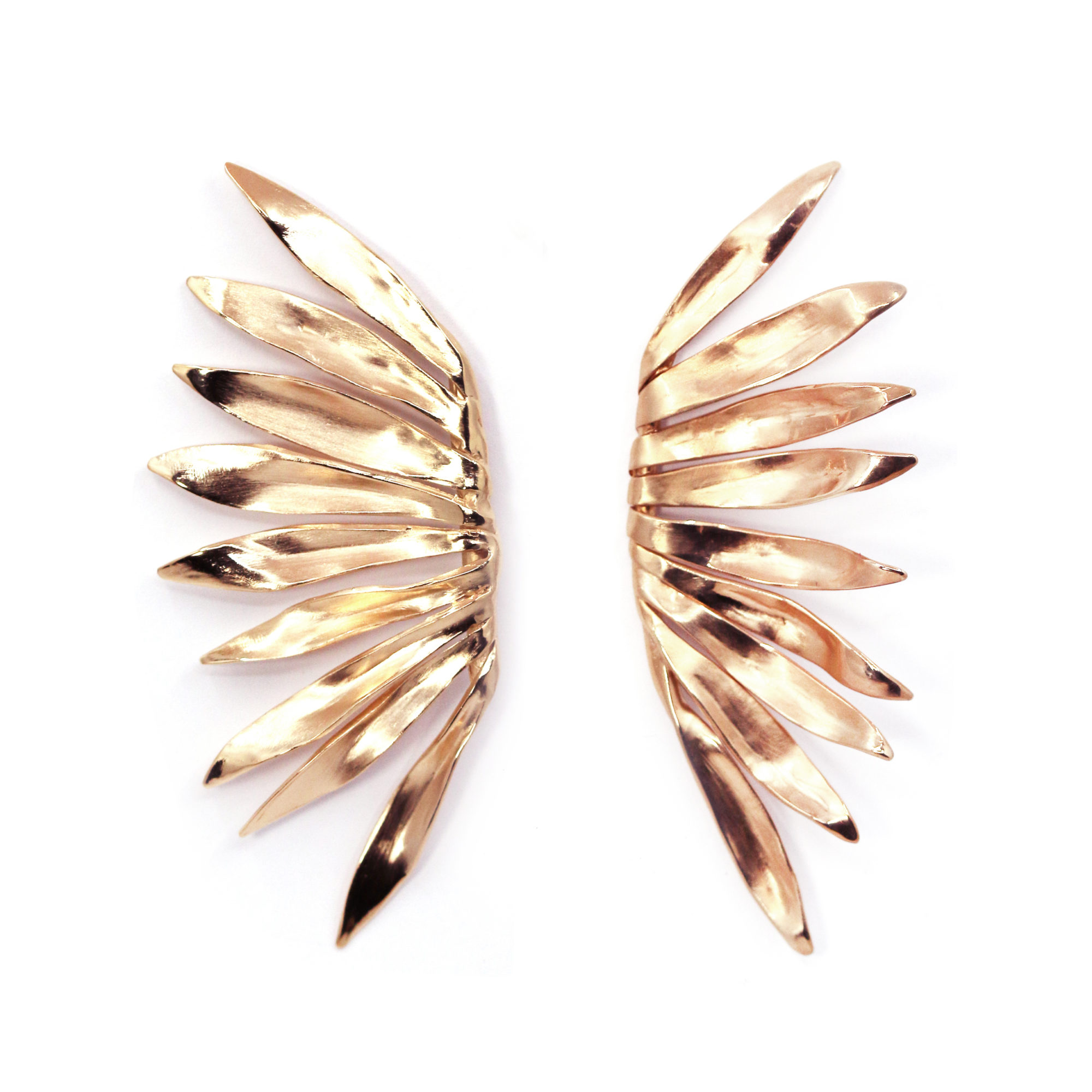 Boucles d’oreilles en argent plaqué or rose 18ct. Pièces uniques pour un look résolument rock. Ce modèle va agrémenter vos oreilles d’un bijou précieux et unique et vous donner un look affirmé et fière. Véritable amazone des villes, vous vous démarquerez.