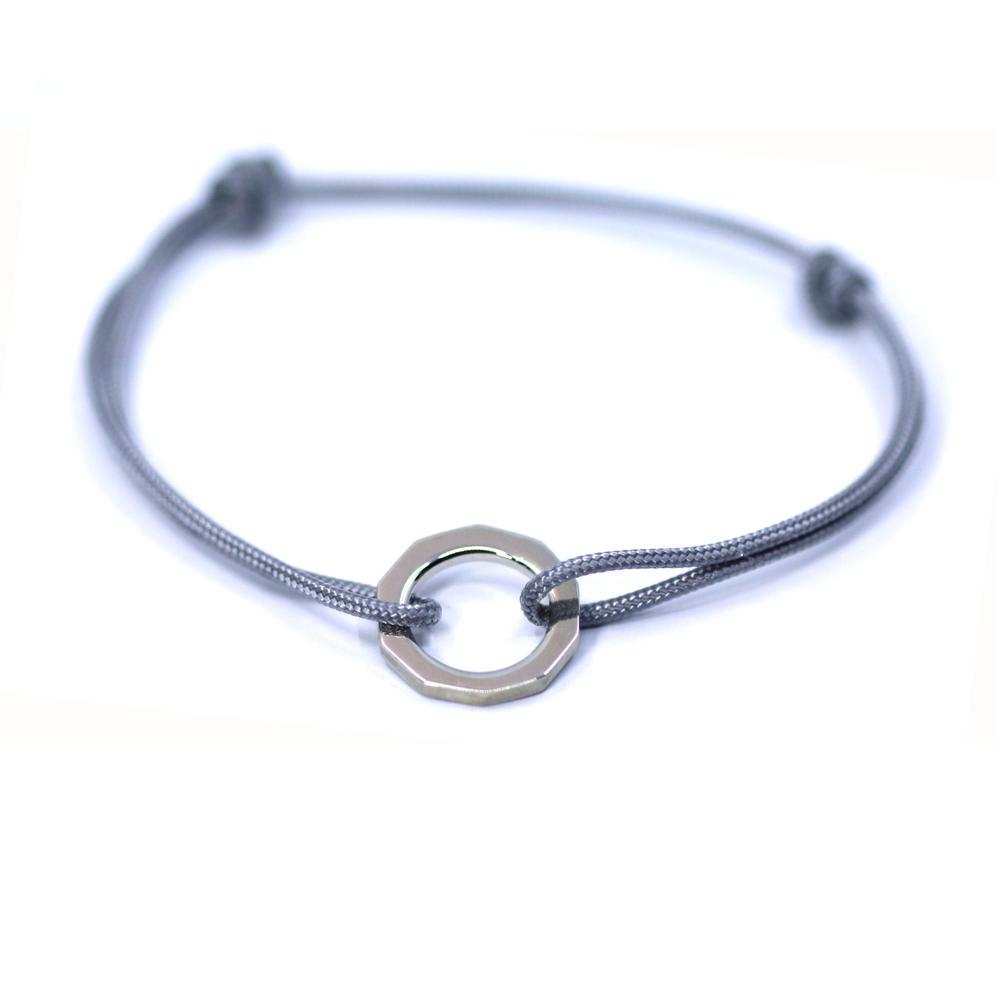 Très beau bracelet unisexe en argent massif. Monté sur cordon taupe, il apportera une touche chic et intemporelle à vos tenues.