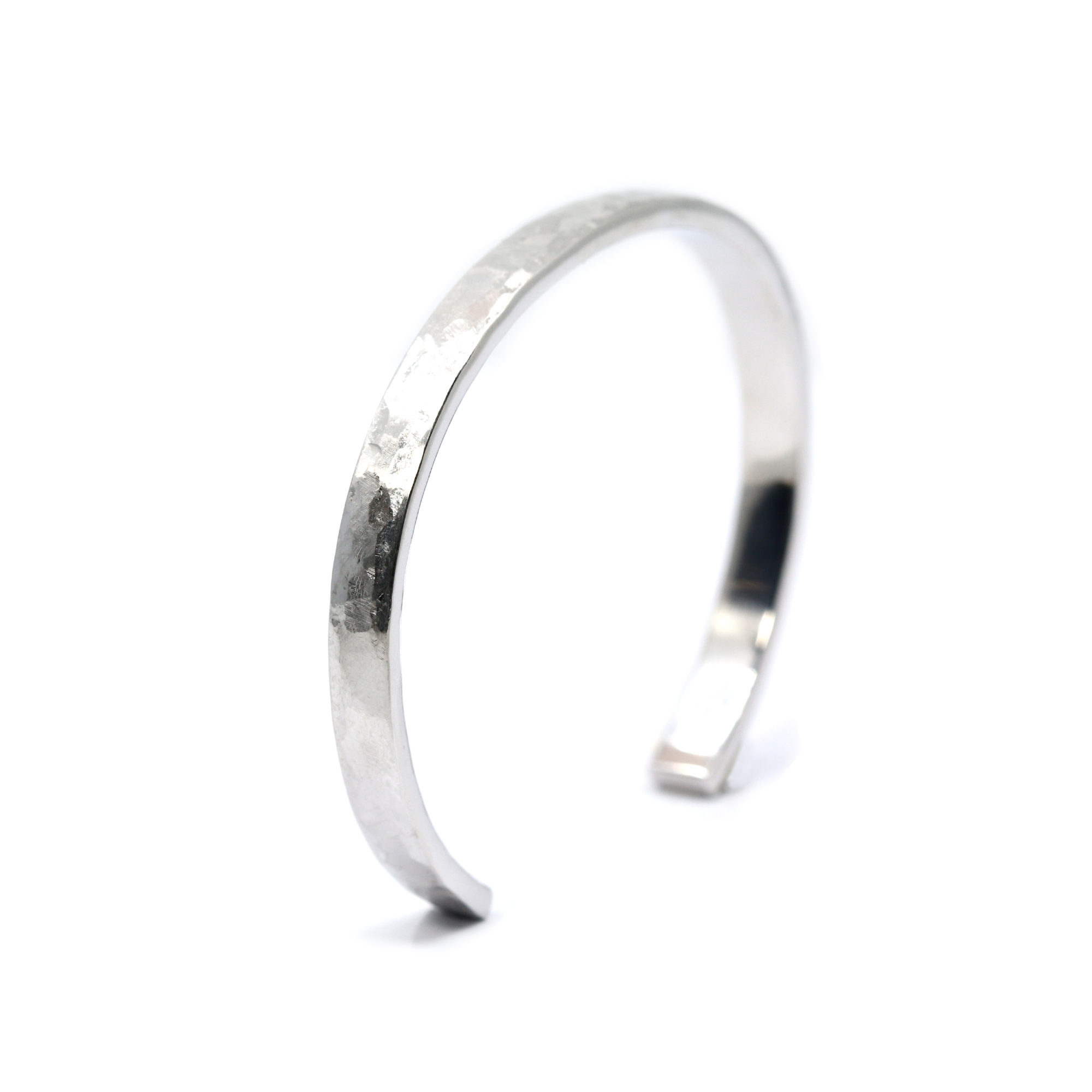Ce bracelet jonc unisexe en argent massif allie caractère brut et élégance contemporaine. Sa bande large de 6 mm, légèrement incurvée, est martelée à la main, créant une surface texturée unique, où chaque coup de marteau révèle la matière et lui confère une personnalité singulière.