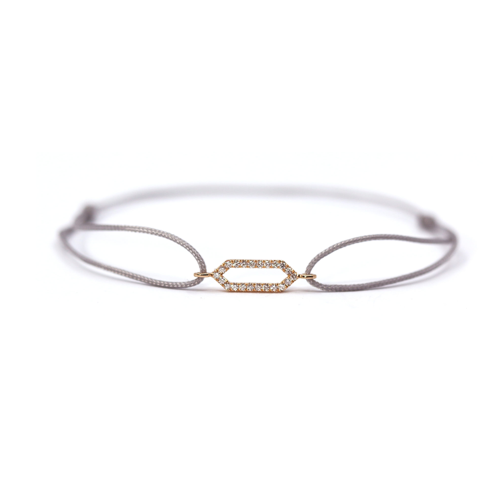 Ce bracelet en or rose serti de 22 diamants et monté sur un cordon à nœuds coulissants est une pièce de joaillerie qui allie l’élégance du métal précieux à l’éclat des diamants, le tout dans un design contemporain et polyvalent.