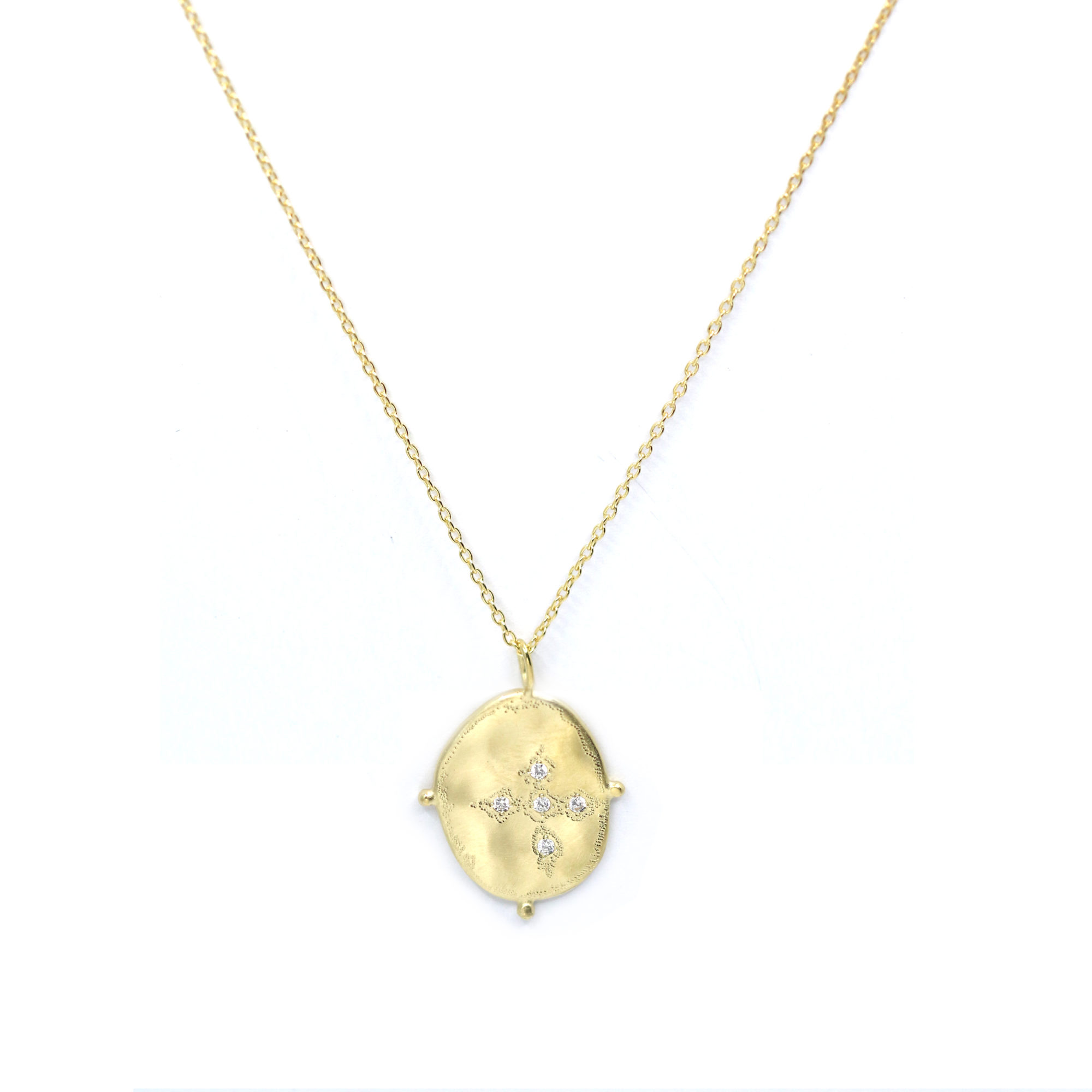 Très beau collier entièrement réalisé dans notre atelier. Argent massif recyclé découpé et martelé avant d’être plaqué or 18ct, ce très beau modèle inspiré des cathédrales européennes et du mysticisme gothique, viendra se nicher sensuellement dans votre décolleté.