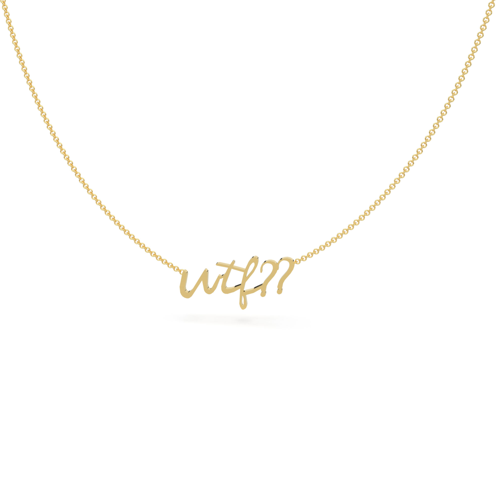 Ce collier en argent plaqué or 18ct intrigue avec son inscription “What the fuck??” audacieuse et directe. La combinaison de l’argent plaqué or crée un contraste saisissant, ajoutant une touche de sophistication à l’expression brute. La finesse du collier met en valeur la précision de l’écriture, créant un équilibre entre le sérieux et la décontraction. Porté autour du cou, ce bijou devient une déclaration de désinvolture et de rébellion, défiant les conventions et affirmant l’individualité avec un soupçon d’ironie et de provocation.