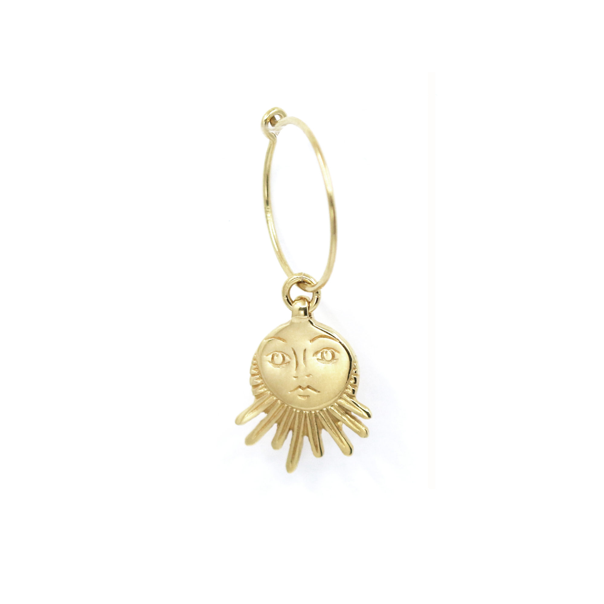Mono boucle d’oreille Soleil gravé argent plaqué or – petit modèle